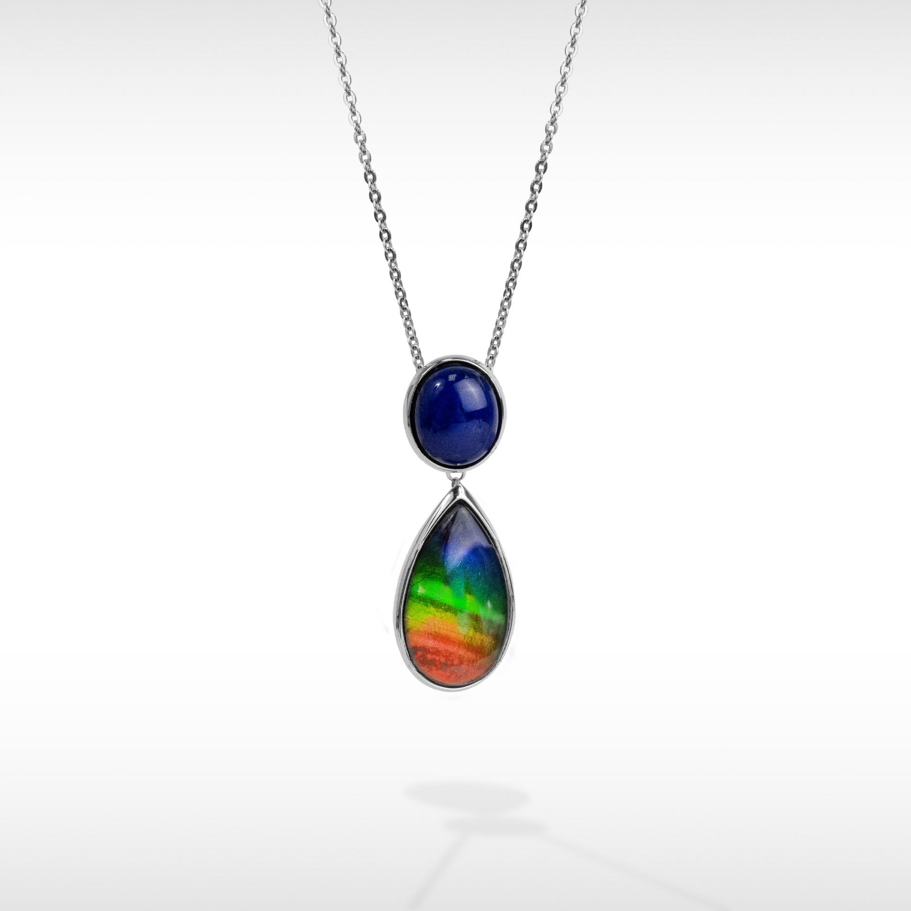 Harmony Ammolite Pendant and Earring Set in Sterling Silver with Lapis