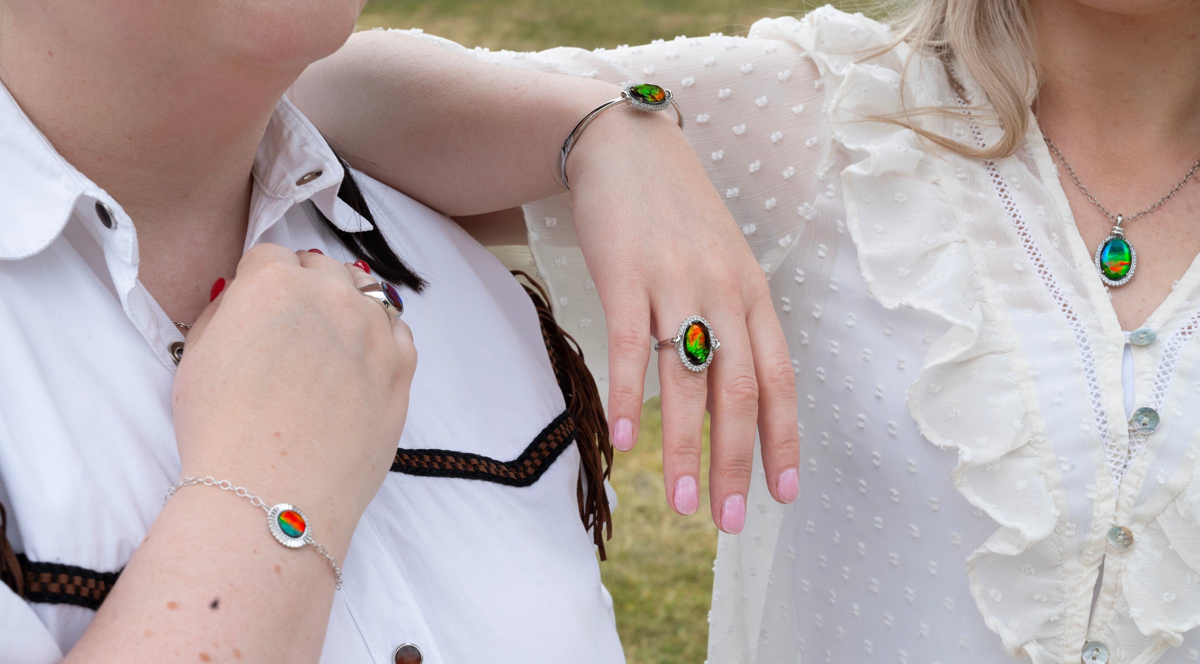 Harmony Ammolite Ring in Sterling Silver with Malachite