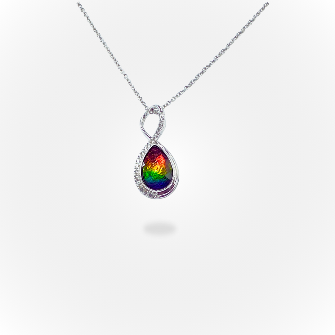 Women's Sterling Silver Ammolite Pendant with White Sapphire Accent